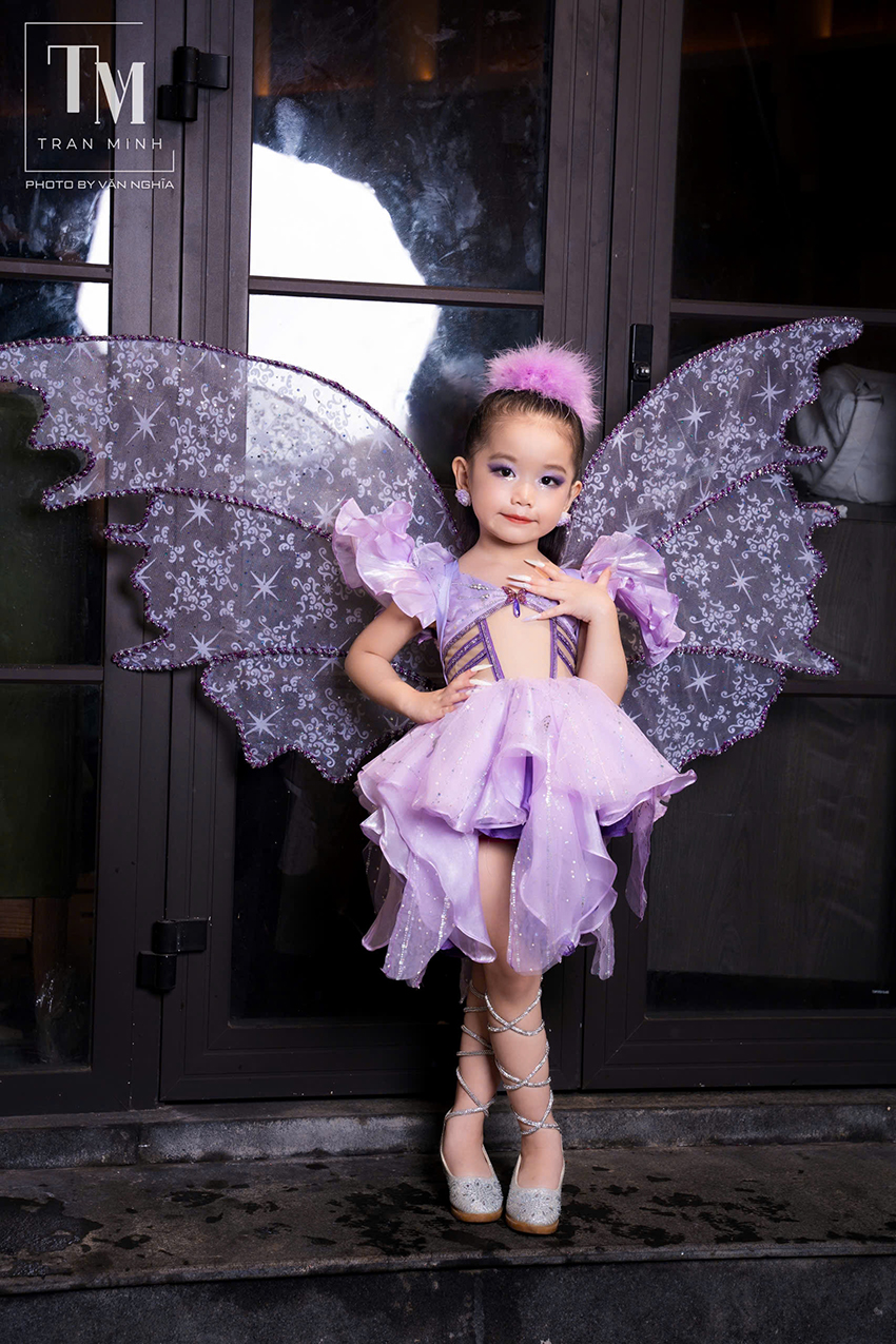 Gia Hân, cô bé sở hữu nụ cười tỏa nắng đã nhanh chóng trở thành tâm điểm của sự chú ý khi xuất hiện trong BST "Những Đôi Cánh Bay". Với đôi cánh màu tím lấp lánh, Gia Hân như một Nàng Tiên nhỏ, bay bổng giữa không gian. Bộ trang phục được thiết kế tinh xảo, với những chi tiết lấp lánh phản chiếu ánh sáng đầy sinh động khiến cô bé trở nên nổi bật hơn bao giờ hết. Không chỉ dừng lại ở vẻ ngoài, Gia Hân còn thể hiện được sự tự tin và thần thái khi di chuyển trên sàn Catwalk khiến mọi ánh nhìn đều đổ dồn về phía mình.
